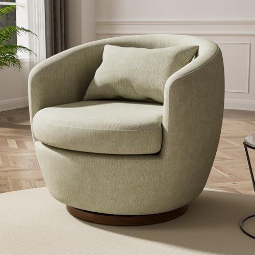 This accent chair boasts a modern design, featuring a sturdy wood frame and a unique barrel shape that complements various decor styles. Upholstered in breathable chenille fabric, it provides both softness and durability while remaining wrinkle-free. The chair is filled with high-density sponge cushions that conform to your body, ensuring a comfortable seating experience that alleviates daily fatigue. Its 360-degree swivel capabilities allow you to easily change your position without having to move the entire chair, making it perfect for any room, from living areas to small office spaces.