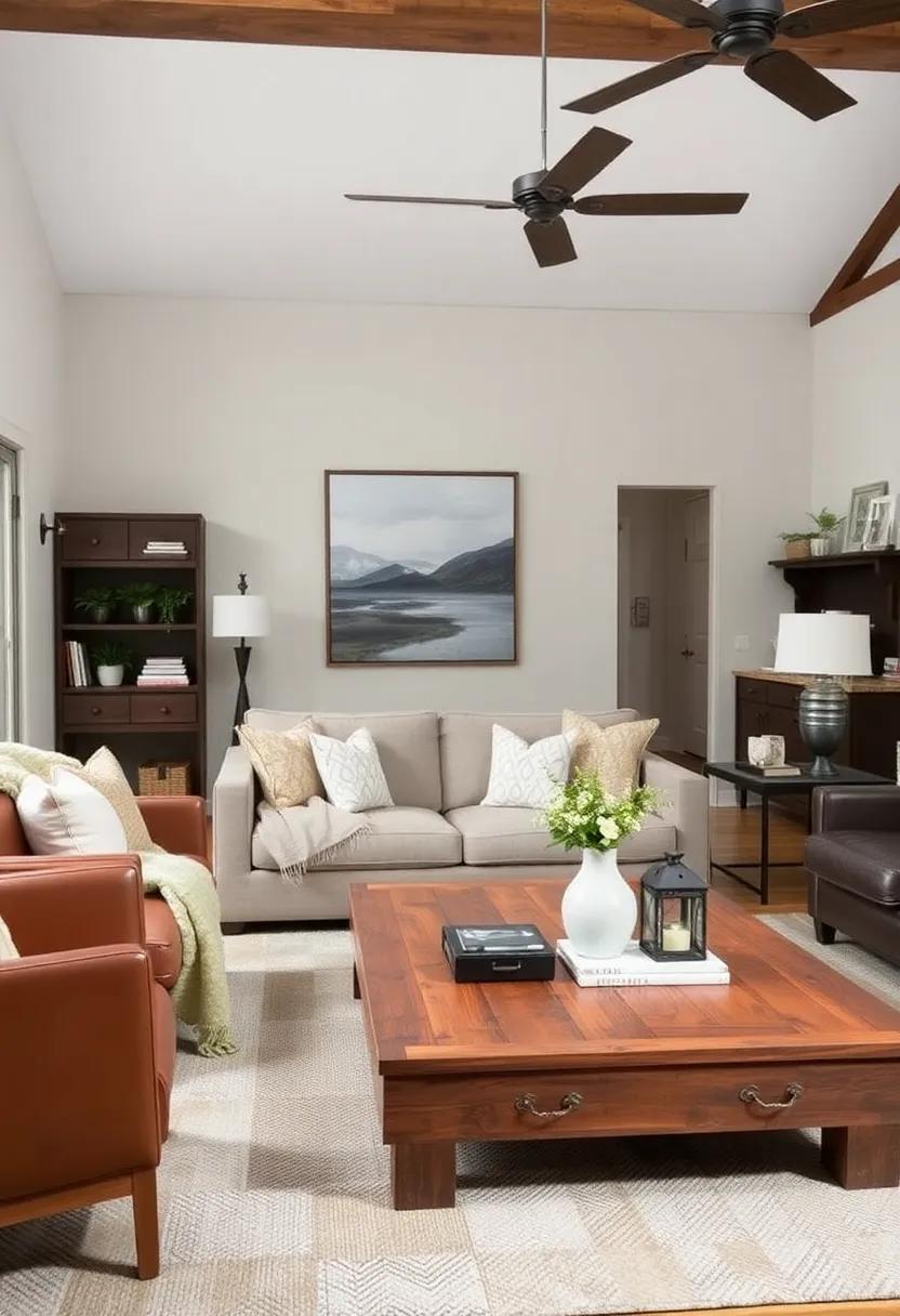 When blending the smooth lines of modern design with the rugged charm of rustic features, the result is a captivating aesthetic that breathes life into any farmhouse living room. One effective way to achieve this balance is by choosing furniture that showcases both contemporary and vintage elements. As a notable example,a contemporary sectional can be paired with a reclaimed wood coffee table,creating a conversation piece that reflects the history and warmth of rustic decor while maintaining modern sophistication. Layered textiles, such as a sleek leather armchair with a textured wool throw, can further enhance this duality, making the space feel inviting and lived-in.