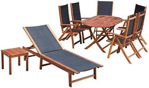 This elegantly designed outdoor dining set is crafted from premium acacia wood, renowned for its durability and weather resistance, ensuring it stands the test of time in various outdoor conditions. With a dark oil finish, the dining table is not only aesthetically pleasing but also easy to maintain. The set comprises six adjustable chairs with a soft, weather-resistant Textilene top, providing comfort for dining or lounging. Additionally, the versatility of the furniture exceeds expectations, as both the table and chairs are foldable, allowing for efficient space management when not in use. For added convenience, it includes a sun lounger with an adjustable backrest and a square tea table perfect for holding beverages and snacks.