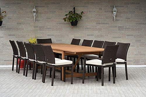 This 13-piece set provides ample seating with 12 chairs, including two armchairs designed for comfort and style. The leveling legs on the table add versatility, allowing adjustments to meet your specific needs. Each chair is fully assembled, eliminating hassle right out of the box. However, when it’s time to store the set during colder months, make sure to choose a well-ventilated area to maintain the integrity of the teak wood. With a classic finish and rich earthy tones, it seamlessly blends into any décor.
