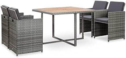 vidaXL 5 Piece Patio Dining Set with Cushions Poly Rattan Anthracite