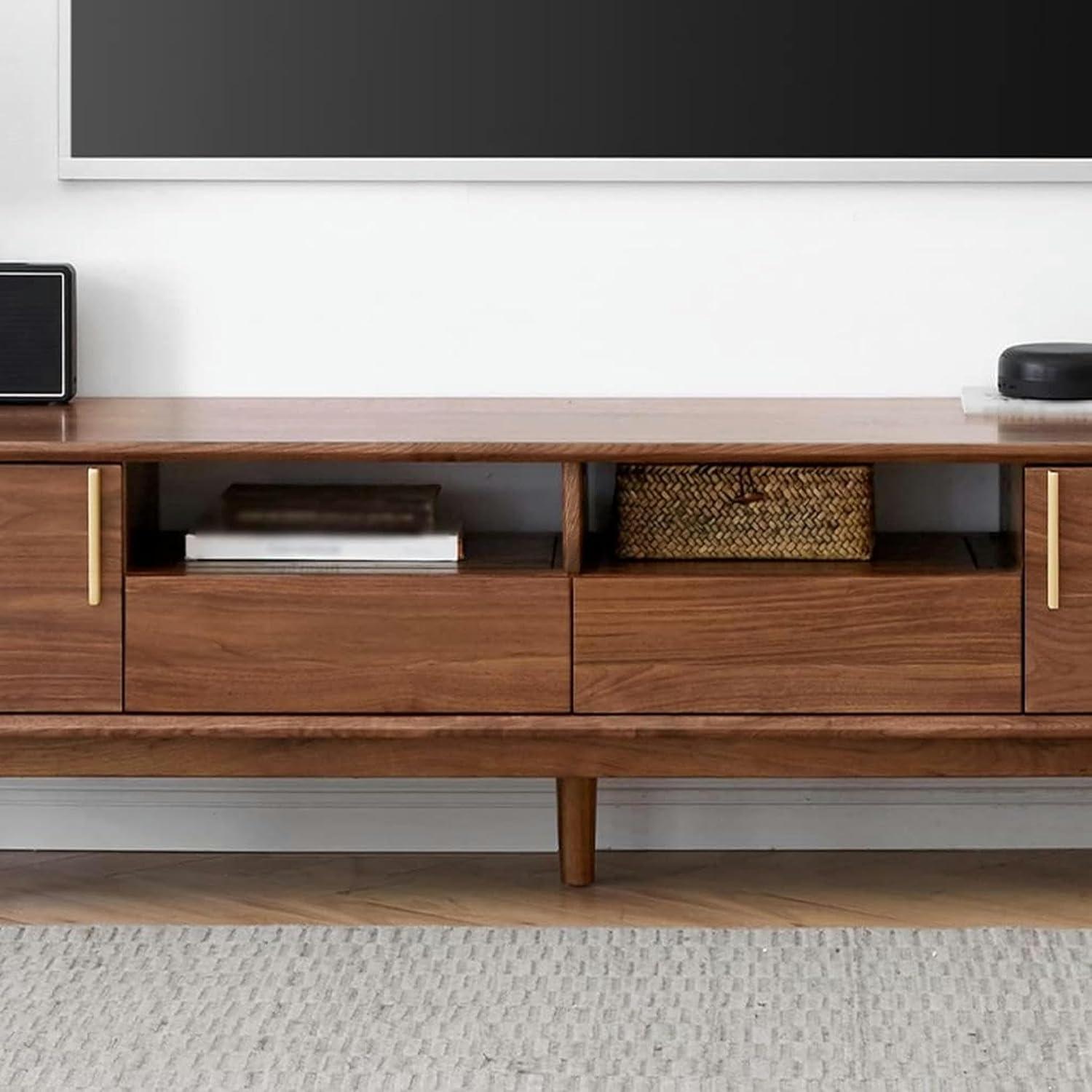 Late afternoon light pools along the top of the unbranded Entertainment Center TV Stand (200 × 40 × 46 cm), bringing out warm notes in the black-walnut finish. From your sofa its low, horizontal silhouette reads significant rather than bulky — long enough to sit beneath the TV yet shallow enough not to intrude into the room. When you glide a hand across the surface the veneer has a gentle tooth, and the drawers close with a soft, muffled thud. Four drawers line the front,their seams and subtle handles breaking the face into calm,practical planes. It feels like something that’s already been lived with: visually grounded, quietly textured, and easy to ignore until you need it.