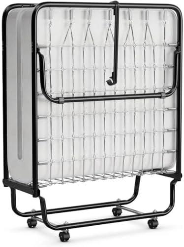 This innovative sleeping solution features a flexible foldable frame that provides convenience and space-saving benefits. Measuring just 31″ x 12.5″ x 43″ when folded, it can easily fit into tight corners or gaps in furniture, freeing valuable floor space in smaller environments. The included 4-inch thick memory foam mattress offers a comfortable sleeping experience by conforming to the user’s body, promoting a restful night’s sleep. Plus, the cover of the mattress is removable and machine washable, ensuring easy maintenance and hygiene. This durable bed is supported by a sturdy metal frame, making it a practical choice for long-term use.