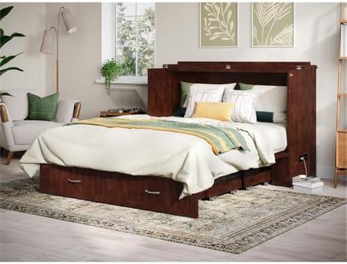 AFI, Aspen Mid-Century Modern Queen Solid Wood Murphy Bed Chest with Mattress in Walnut