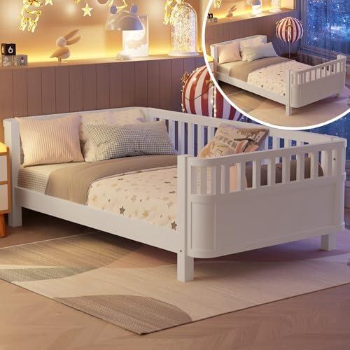 The bed is thoughtfully designed with safety in mind, featuring a low-to-the-ground structure that enables children to climb in and out easily, fostering independence. The inclusion of side rails and rounded corners significantly minimizes pinch hazards and potential bumps, ensuring a safer sleeping environment for your little ones. The solid wood construction, reinforced with sturdy plywood slats, promises durability and stability, providing a reliable sleeping area that can support up to 250 lbs. Its versatility allows it to serve multiple functions, including a daybed or side sleeper bed, catering to the changing needs of growing children.