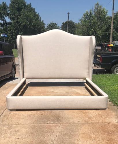 This elegant bed frame combines classic design with sturdy functionality. Made from handmade wood, it features a simple geometric wing side style and a channel headboard, which enhances the aesthetic of any bedroom. The use of skin-friendly linen fabric adds to its comfort, creating a cozy space for relaxation. Its heavy-duty metal slats provide optimum support for various mattress types without needing a box spring, making it versatile for all sleeper preferences.