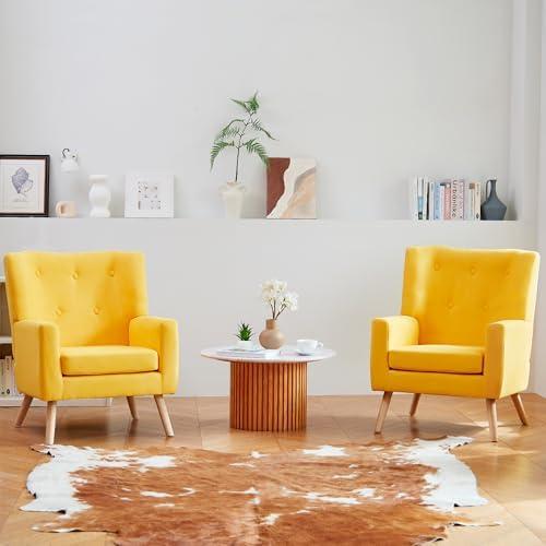 Crafted with attention to detail, this set of two accent chairs features a stunning button-tufted design and a stylish wingback that elevates any space. Upholstered in high-quality fabric, these chairs provide a luxurious feel while ensuring durability with a solid wood frame and sturdy rubberwood legs. The thick, high-density foam cushion offers unparalleled comfort, making them ideal for relaxing after a long day or curling up with a good book. Their spacious dimensions—29.1″D x 28.3″W x 30.3″H—accommodate users of varying sizes comfortably. Additionally, their vibrant yellow color adds a cheerful pop to your living room, bedroom, or even corner reading nook.
