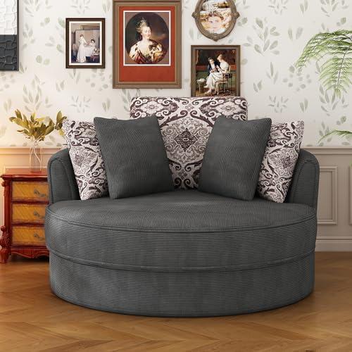 Featuring a chic design and generous dimensions, this accent chair invites relaxation in any space. With a 360-degree swivel mechanism, you can effortlessly change positions while seated, making it an excellent addition for small rooms or social gatherings. The chair’s impressive size, measuring 51.5″D x 51.5″W x 34.2″H, provides ample seating, while the premium corduroy upholstery not only enhances its aesthetic appeal but also offers superior softness and comfort. Complemented by five movable pillows, this chair allows for customizable support, making it perfect for lounging with a book or enjoying a cup of coffee.