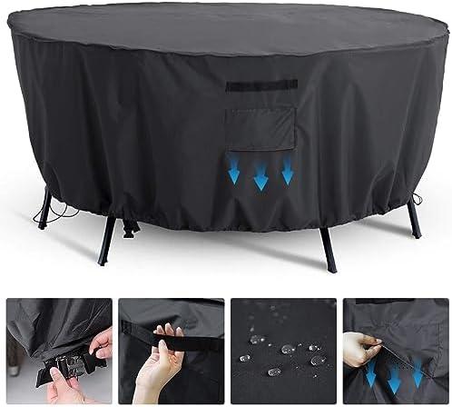 This outdoor furniture protector excels in creating a barrier against various weather elements. Made from high-density 420D Oxford cloth, it offers excellent durability. Its features include being waterproof, snow-proof, and UV-resistant, providing comprehensive protection for your patio furniture. The black PVC lining not only adds to its durability but also keeps your furniture looking pristine for longer. Additionally, the cover’s four windproof straps ensure a snug fit around the furniture legs, reducing the risk of it being blown away in strong winds. The double-stitching reinforced by sealed seams further enhances its ability to keep moisture out, making it an ideal choice for maintaining your outdoor setup.