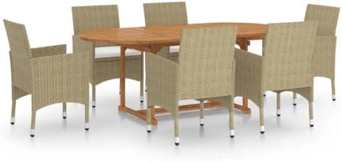 Elevate your outdoor experience with this stunning 7-piece dining arrangement that combines style and functionality. The sturdy dining table, crafted from solid acacia wood with an oil finish, not only provides stability but also withstands the elements, making it a perfect choice for outdoor setups. Each chair features a robust steel frame wrapped in weather-resistant poly rattan, ensuring both durability and ease of cleaning. The cream-white, thickly padded cushions enhance comfort, inviting you to enjoy long meals or casual gatherings in your garden, patio, or deck setting.