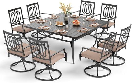 Spacious Dining Set for 8 with Swivel Chairs and Umbrella Access