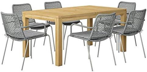 While the set is undeniably stylish, there are some considerations to keep in mind. The use of natural wood means some maintenance is necessary, particularly the application of the included Amazonia Wood Protector to safeguard against environmental factors like air pollution and mildew. Additionally, the weight of the set can make rearranging it a bit cumbersome. That said, the benefits often outweigh the drawbacks. This striking patio dining set is an ideal choice for anyone looking to enhance their outdoor space.