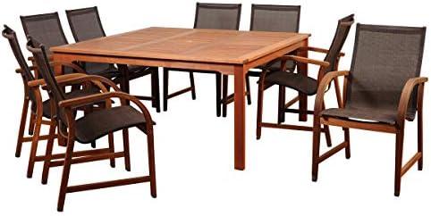Experience a blend of durability and style with this exquisite patio dining set. Crafted from solid Eucalyptus Grandis wood, sourced from 100% managed Brazilian forests and certified by the FSC, it’s designed not just to impress but also to last. The set includes a spacious square table along with eight comfortable armchairs that perfectly accommodates gatherings of family and friends. With its Weathernet slings, the seating provides quick drying and exceptional comfort, making it perfect for outdoor dining. The quality craftsmanship guarantees robustness while still being affordable, ensuring your patio looks stunning for years to come.