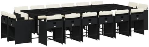 This elegant dining set is an excellent choice for those looking to enhance their outdoor space with both style and functionality. Made from durable PE rattan, it mimics the look of natural rattan while ensuring low maintenance and high resistance to weather conditions. The garden table, measuring 129.9” x 41.7” x 28.7”, is complemented by a stable tempered glass top that withstands daily use while remaining easy to clean. Additionally, the set includes 16 chairs featuring foldable backrests, allowing for compact storage under the table, making it perfect for smaller patios or gardens.