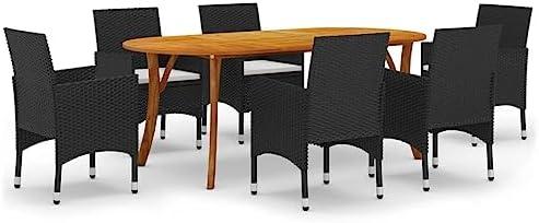 This patio dining set offers a perfect blend of style and function for your outdoor space. The solid acacia wood table is not only sturdy but also features an easy-to-clean oil finish, making it ideal for frequent outdoor use. The set includes six dining chairs made of a robust steel frame wrapped in weather-resistant PE rattan. Each chair comes with thick, padded cushions that provide exceptional comfort during long meals or gatherings. it’s a versatile choice for gardens, patios, and decks, creating a cohesive look that enhances any outdoor setting.
