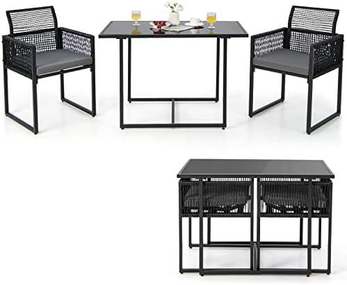 While the space-saving feature allows the chairs to fold down and tuck neatly under the table, there are some drawbacks to consider. The primary con is that assembly is required, which might be a hassle for some. Additionally, to extend the longevity of the furniture, it is advised to avoid rain exposure, potentially limiting use during wetter seasons. this outdoor dining set combines style, convenience, and comfort, making it an excellent addition to your outdoor space.