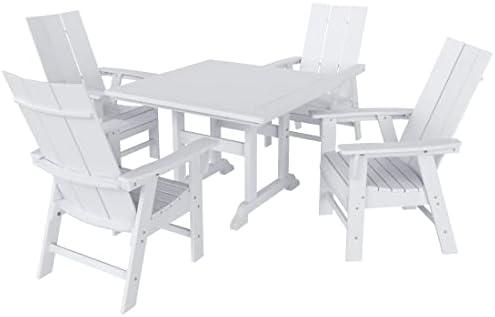 This 5-piece outdoor dining set combines functionality with style, making it ideal for family dinners or gatherings in your garden or patio. Featuring a spacious 43″ square table accompanied by four curved-back chairs, it draws from the modern Adirondack design while providing comfortable seating. Crafted with HDPE material, this set is designed to withstand the elements. The durable construction ensures that you won’t have to deal with splinters, cracks, or peeling, offering an aesthetic that resembles natural wood without its common drawbacks. The slatted tabletop is not only stylish but also effective at shedding rainwater, enhancing its practicality for outdoor use.