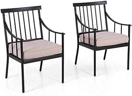 These metal outdoor chairs come with plush seat cushions, offering an ideal blend of style and comfort for your patio, porch, or balcony. The ergonomic design features curved backs and armrests that fit the natural curve of the human body, providing relief from pressure in your lower back and arms during extended seating. With an overall dimension of 21.3″W x 22″D x 35.4″H and a robust load capacity of 300 lbs, these chairs are spacious enough for a variety of users. The seat cushions, measuring 3.5 inches thick, enhance comfort further, making these chairs perfect for relaxed conversations outdoors.