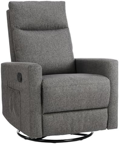 This versatile recliner combines functionality and comfort, making it an ideal choice for various settings, from nurseries to living rooms. Upholstered in breathable, skin-friendly linen fabric, it ensures long-lasting comfort and resilience, preventing deformation after extended use. The sturdy metal frame provides stability, easily supporting up to 250 lbs, while the smooth swivel feature adds to its appeal. With adjustable footrest and backrest angles, it offers a personalized relaxation experience, allowing users to effortlessly find their preferred position.