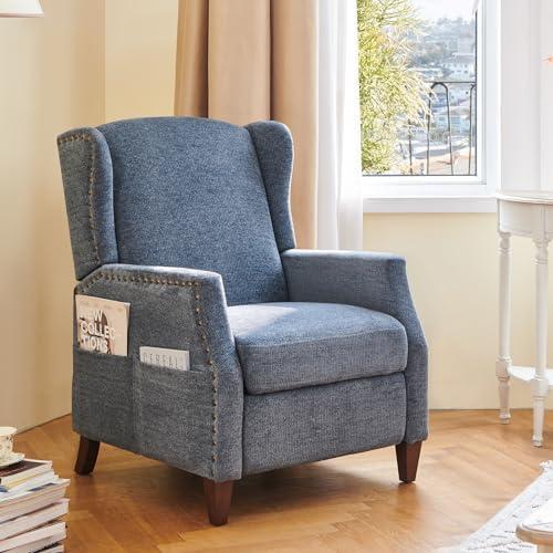 The functionality of this recliner is enhanced by its manual reclining feature, which adjusts smoothly from 110° to 150°, making it a versatile addition to any room. Additionally, the convenient side storage pocket offers easy access to small items like magazines and remote controls, keeping your space tidy. However, some users may find that the chair requires more effort to recline compared to motorized options, and the fabric may need regular maintenance to maintain its appearance. this armchair combines contemporary style with timeless charm, making it a fantastic choice for various settings.