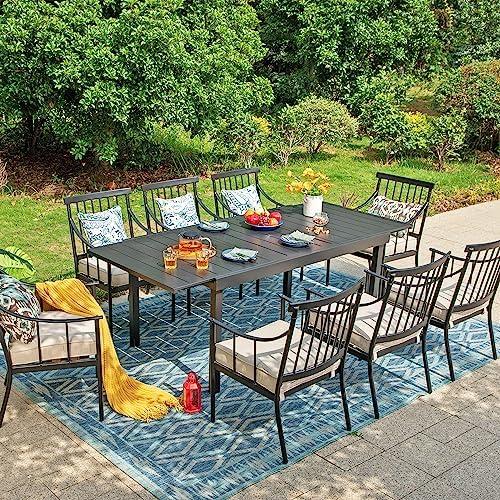 Metal Outdoor Dining Set for 8 with Expandable Table and Chairs