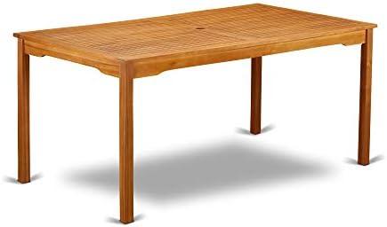 Crafted from premium Acacia wood, this outdoor dining set is designed to elevate any patio or backyard with its timeless charm and robust construction. The rectangular table, measuring 36×66 inches, provides ample space for dining experiences, accommodating up to six people. Each of the six folding side chairs features an elegant ladder back design, combining style and comfort. The lightweight nature of the chairs makes them easily portable, and their folding capability ensures convenient storage during off-seasons. Clean-up is a breeze, requiring only a damp cloth to maintain the beautiful natural oil finish that protects the wood from the elements.