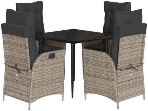 Elegant 5-Piece Outdoor Dining Set with Adjustable Recliners and Cushions