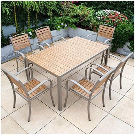Durable Steel Dining Set with Acacia Wood Armrests