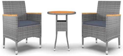 This charming garden dining set combines style and comfort, making it an ideal addition to any patio or garden. It features a strong, powder-coated steel frame paired with weather-resistant PE rattan that ensures longevity and stability, even under diverse weather conditions. The chairs are designed ergonomically for enhanced comfort, complete with thick, dark gray cushions that add a plush seating experience. The tabletop made from solid acacia wood not only offers a beautiful natural appeal but is also treated for durability and easier cleaning, making it friendly for outdoor use.