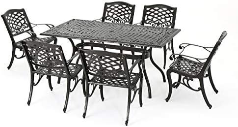 Stylish 7-Piece Outdoor Dining Set in Hammered Bronze