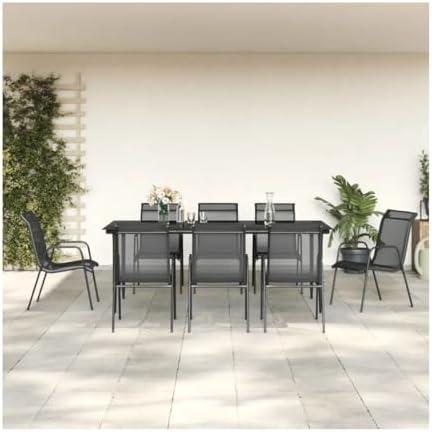 9 Piece Patio Dining Set Black Steel and Textilene 3200689, Easy to Install
