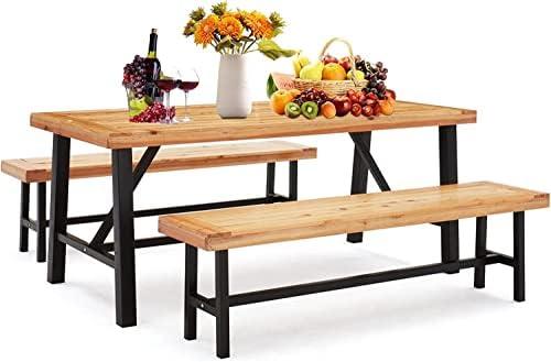 Outdoor Wood Table and Bench Set for Various Spaces