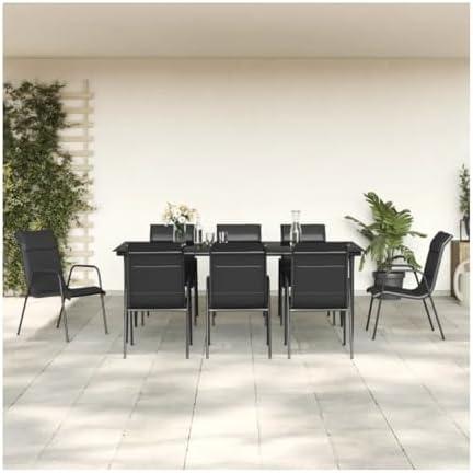 9 Piece Patio Dining Set Black Steel and Textilene 3200709, 3-7 Days Delivery