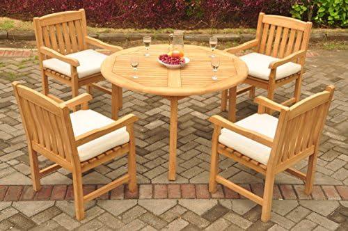 Luxurious Teak Wood Dining Set with Round Table and Chairs