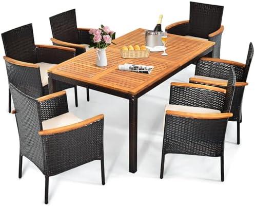 Stylish Outdoor Dining Set with Acacia Wood and Cushioned Armchairs