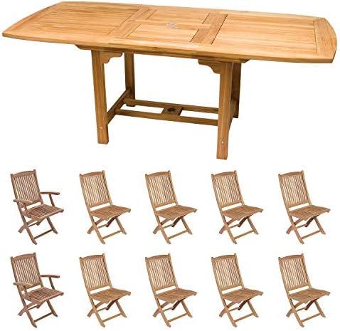 11-Piece Teak Patio Dining Set with Expansion Table & Folding Chairs