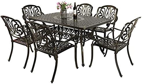 However, while this set boasts many advantages, there are some considerations to keep in mind. One potential drawback is the weight of the furniture, which can make rearranging the setup a bit challenging. Also, while the cast aluminum is resistant to rust and weather, extreme weather conditions may still affect the longevity of the finish over time. It’s essential to perform regular maintenance to keep the set looking its best. this elegant dining configuration is ideal for enhancing your outdoor living area while providing a stylish and functional gathering place.