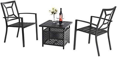 This three-piece patio set features durable metal dining arm chairs accompanied by a robust umbrella table, ideal for small outdoor spaces. The stylish design enhances any garden, balcony, or patio area, offering comfort with seating that promotes relaxation during meals or gatherings. With a convenient 1.57-inch umbrella hole, it’s easy to insert your favorite outdoor umbrella, providing much-needed shade on sunny days. The metal construction ensures long-lasting use, making it a worthwhile addition to your outdoor furniture collection.