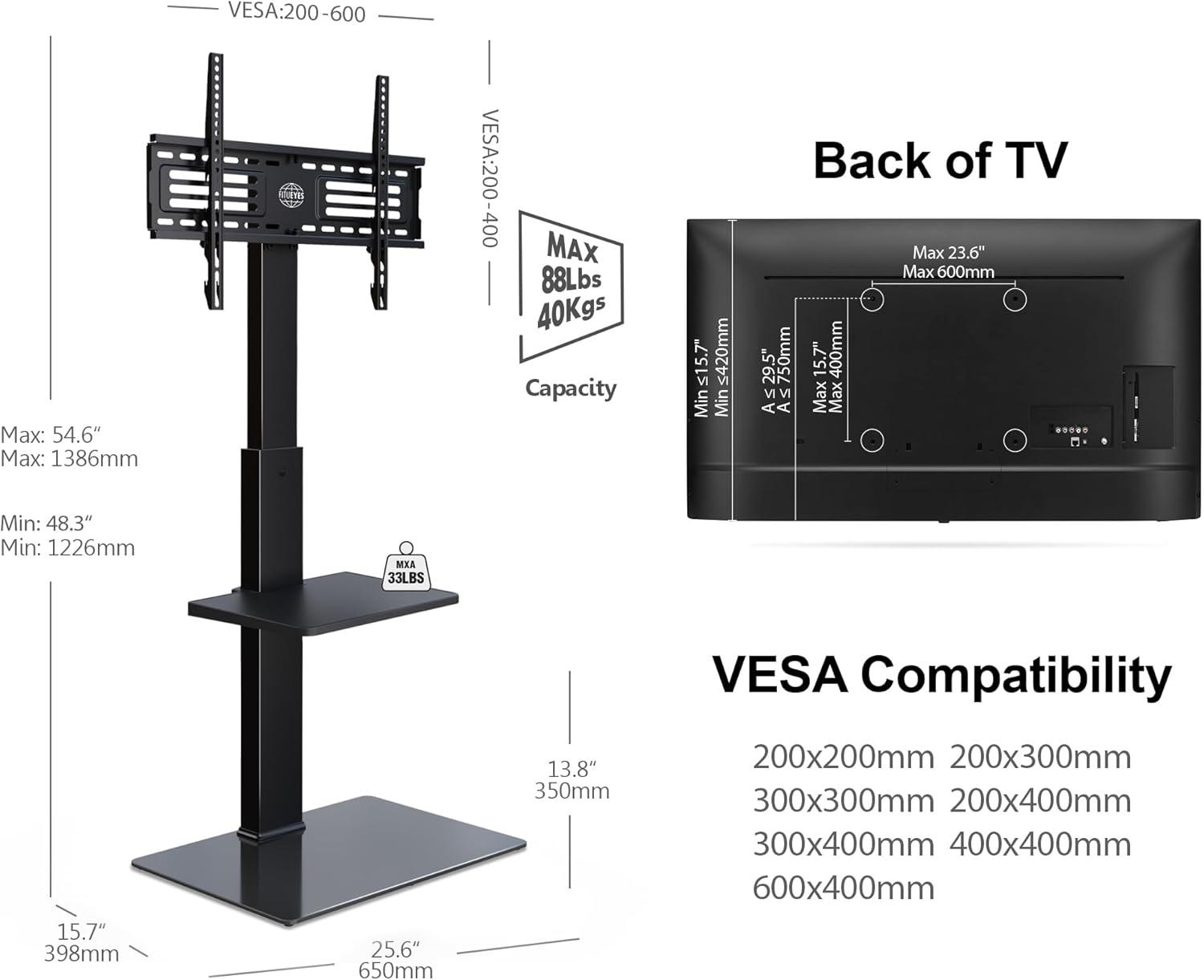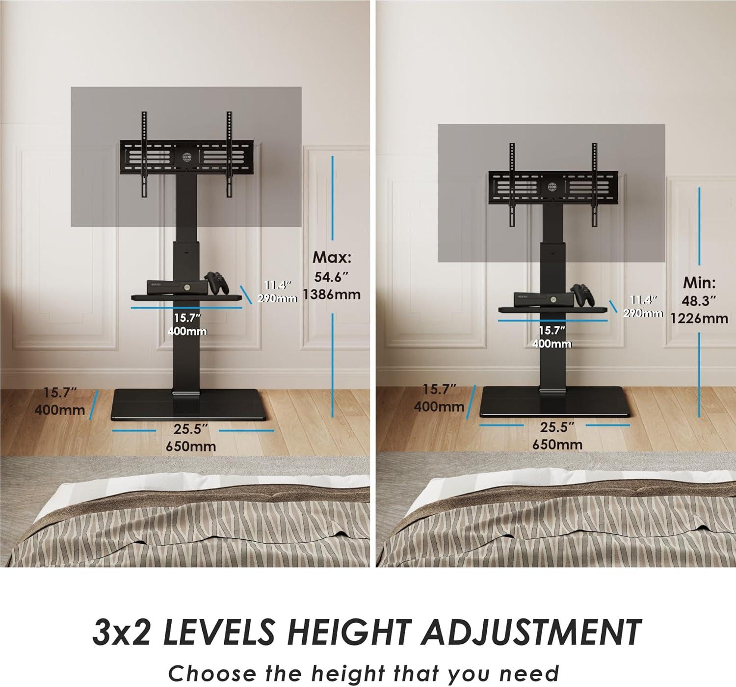 You notice that the FITUEYES Swivel Floor TV Stand with Mount for TVs 37 43 50 55 60 65 70 75 inch LCD LED Flat/Curved Screens Universal Swivel Televisions TV Mount Stand for Bedroom Living Room Black Tempered Glass Base eases into the room over time, finding its place in corners and sightlines as the room is used. In daily routines it quietly alters where you sit and how you arrange cushions,becoming part of the small comfort behaviors that shape evenings and slow mornings. The base gathers the faint scuffs of movement, surfaces collect familiar smudges, and its steady presence settles into regular household rhythms.Eventually it rests and becomes part of the room.
