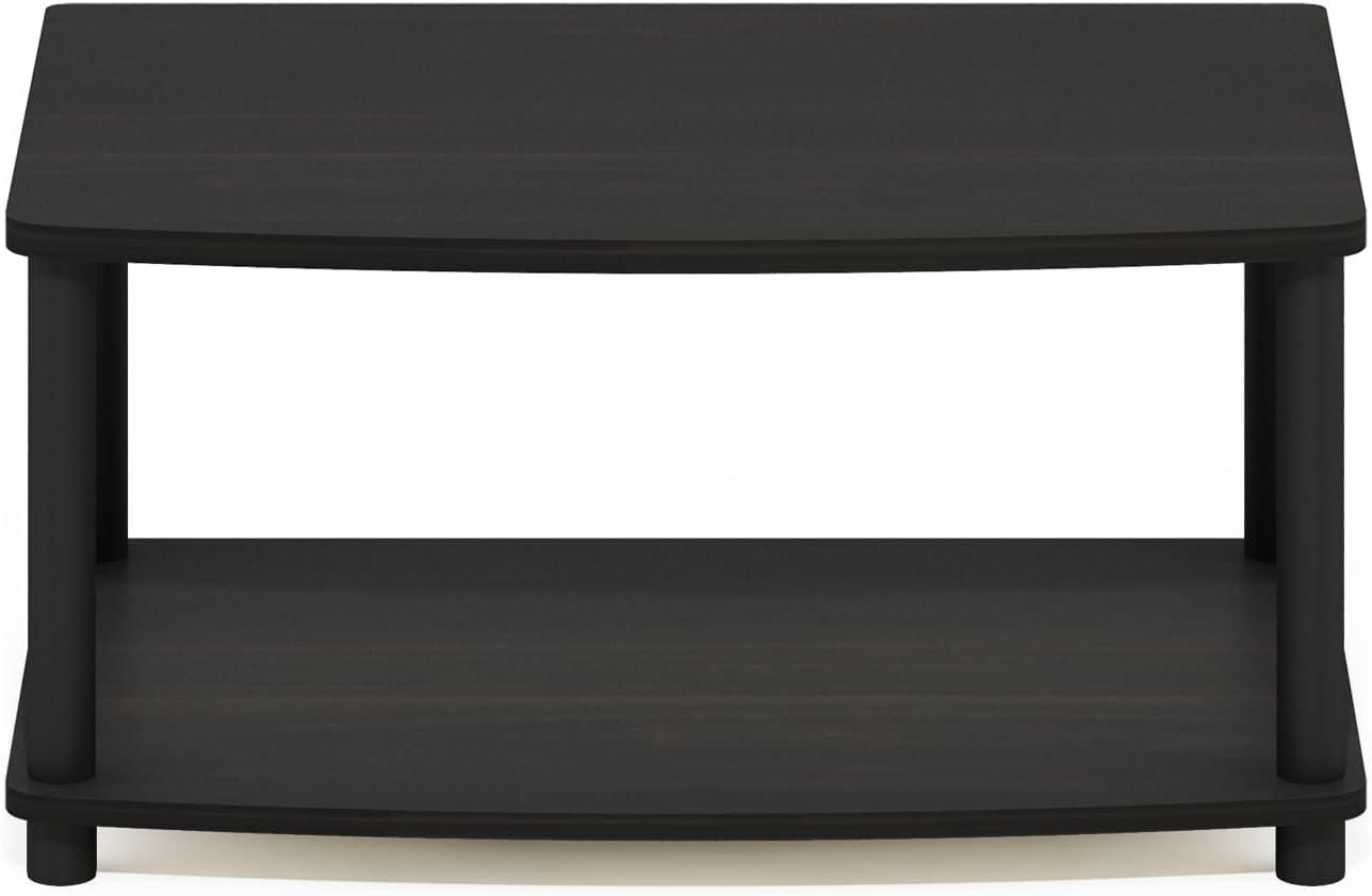You set your palm on the low platform of the Furinno TURN-N-TUBE TV Riser Stand and the piece reads as quietly practical rather than flashy. In the room’s light the espresso laminate shows a subtle grain, and the plastic tubes under the corners give a slightly airy, engineered feel when you bump the stand. The two-tier silhouette keeps the screen sitting just above eye level, while the lower shelf takes on the look of a small, useful stage for a streaming box and a stack of remotes. Up close the edges are rounded and the surface feels cool and clean under your hand—an immediate impression of modest scale and unfussy materials that settles into the space.