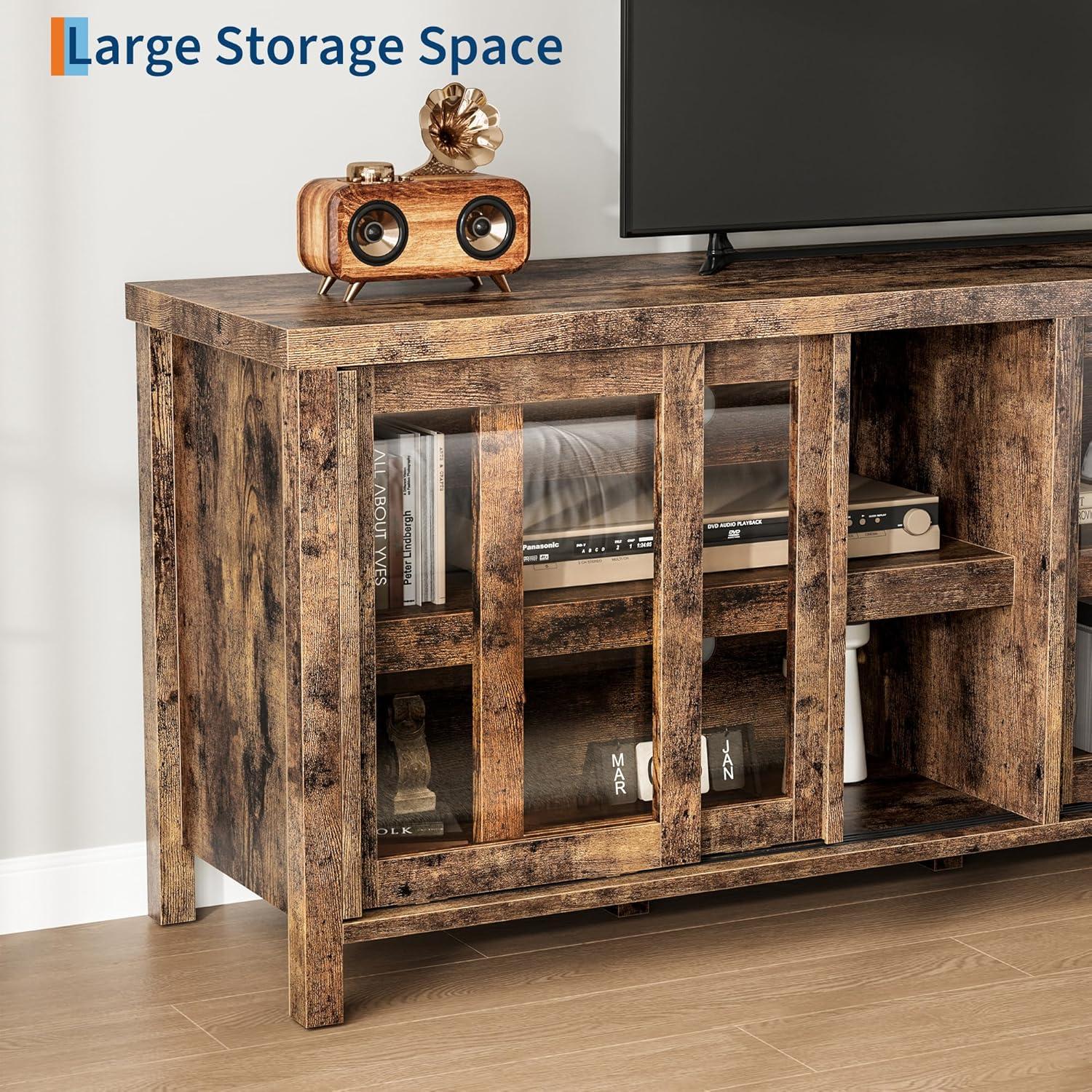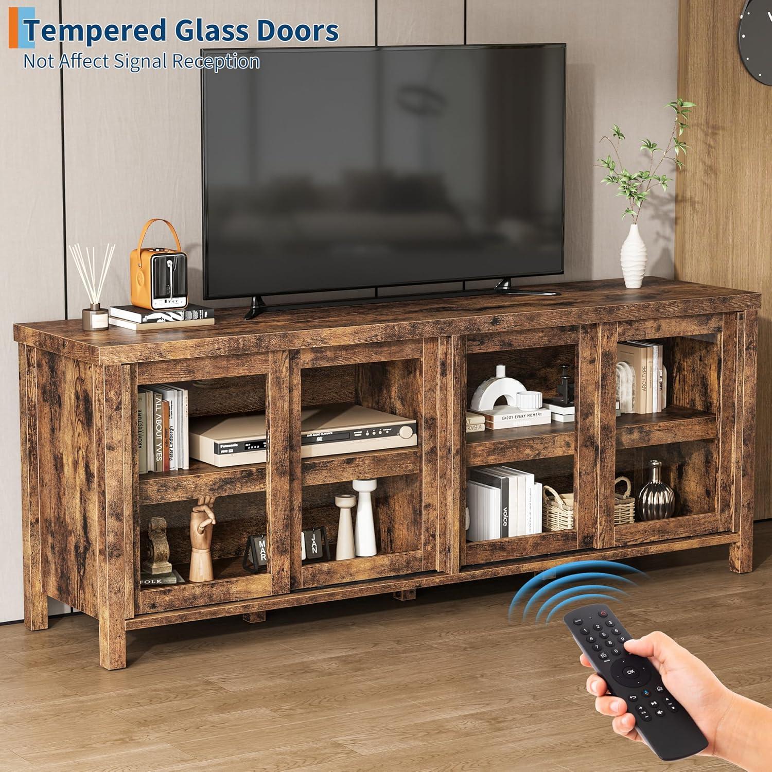 You notice the GarveeHome 65 inch TV Stand for 70″ TVs, Entertainment center with Storage Cabinet and 4 Sliding Glass Doors, Mid Century Modern Media TV Console Table for Living Room Bedroom, Retro Brown settling in more as a steady presence than a headline, softening over time into the background of daily life. In daily routines it carves out small uses of space — a cleared patch for a morning cup, a habitual pile of remotes, the faint rub of hands along the edges where comfort happens. As the room is used it shows gentle surface wear and adapts to the household rhythms, not demanding attention so much as taking its place in how you move through the day. After a while you find it stays.