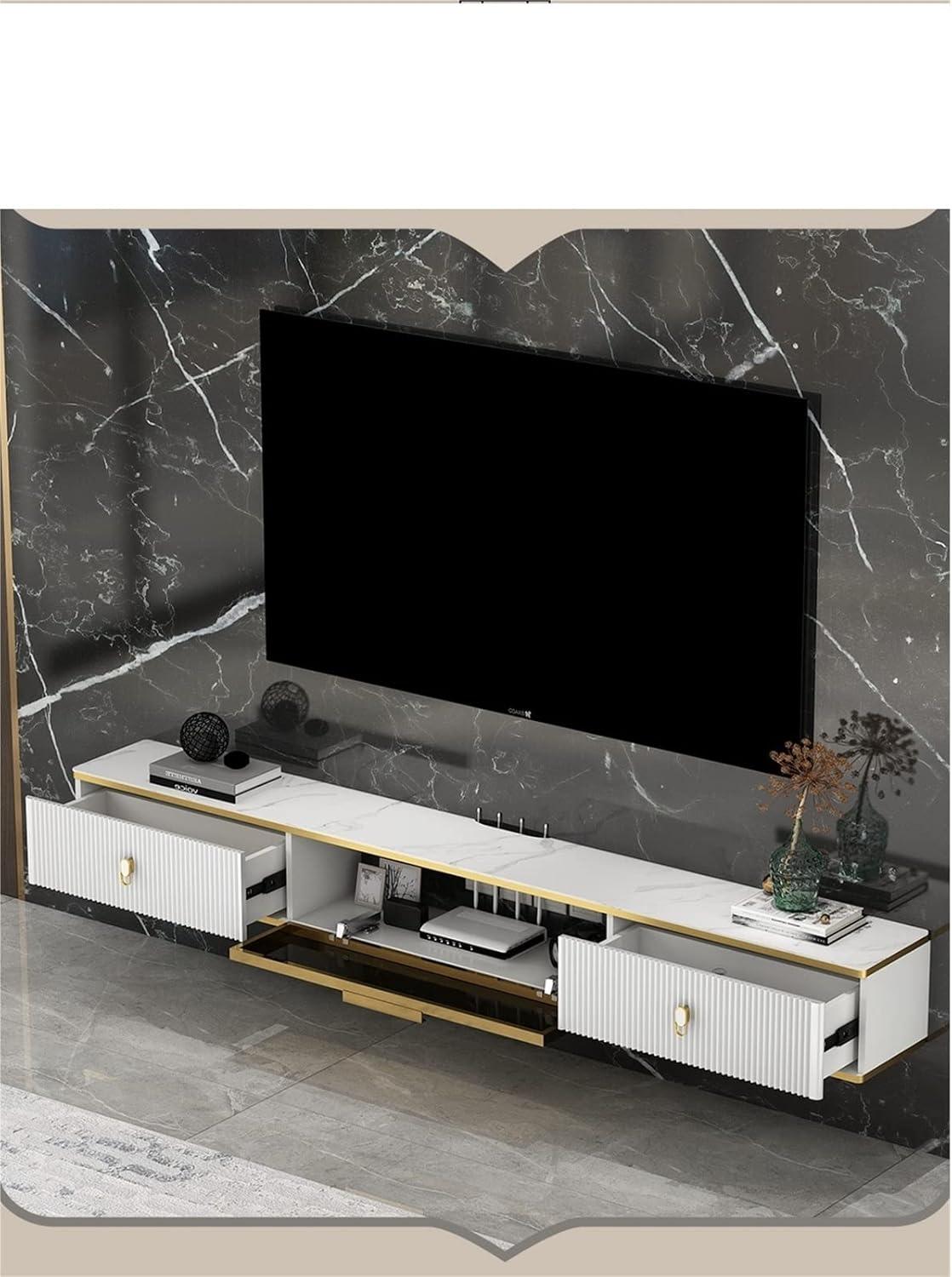 Additional benefits include two ultra-large drawers perfect for keeping controllers, DVDs, and remotes tucked away, contributing to a clutter-free media center. The open shelving beneath is tailored for components like routers,game consoles,and cable boxes,making the whole setup feel organized and accessible.
