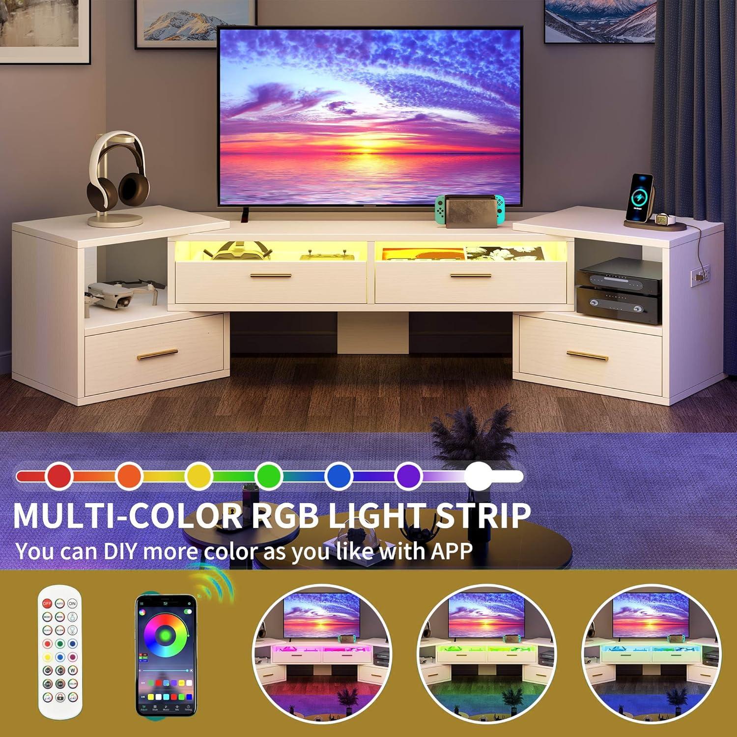 Our living spaces demand furniture that not only performs well but also elevates the room’s visual appeal.This TV stand impresses with its versatile shape-shifting design,allowing us to customize the layout to seamlessly blend with corners,walls,or open areas. Its crisp white finish combined with sleek acrylic accents introduces a fresh, modern charm that brightens up any living room. Beyond function, the stand becomes a statement piece-especially with integrated RGB LED lights that add subtle pops of color or create a dynamic atmosphere for gatherings, special occasions, or quiet nights in. The ability to tailor colors and light effects through an app or remote means our entertainment center adapts to our mood and décor themes effortlessly.