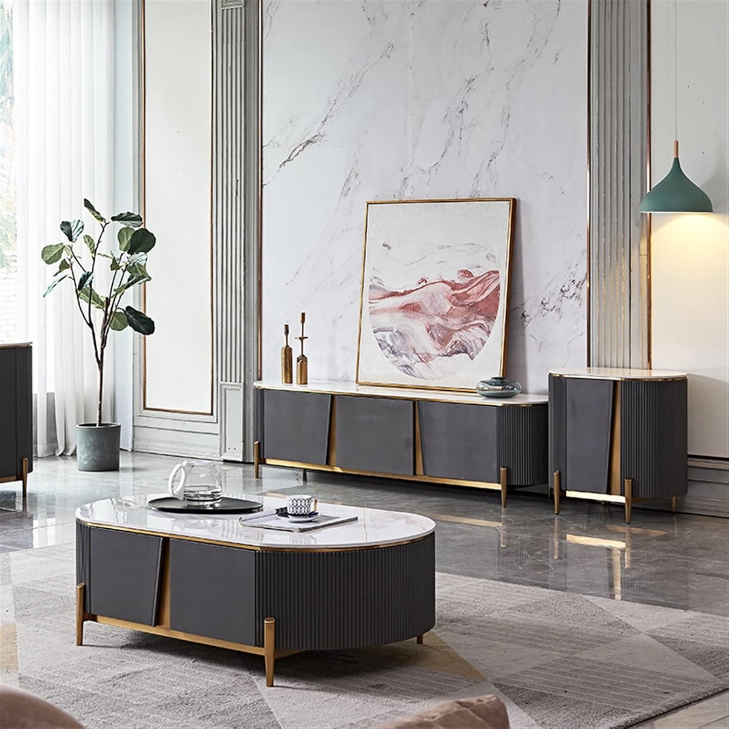our stylish TV stand truly redefines living room storage by combining elegance with functionality. Its light and luxurious arc design brings a unique charm to any space, while the sturdy construction promises lasting durability. With ample, well-thought-out storage compartments, it keeps your media devices and essentials neatly organized, helping us all maintain a tidier, more inviting living area. Plus, its versatile nature means it effortlessly doubles as a coffee table, side table, or even a chic entryway piece. If you’re looking to elevate both the look and practicality of your living room,this TV stand is definitely worth considering.