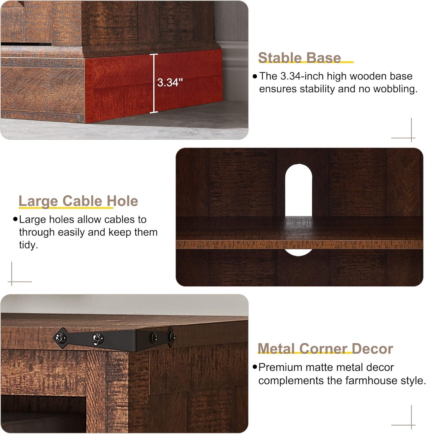 We were impressed by the solid construction, especially the 1-inch thick tabletop and the considerable wooden base, which offer excellent stability for heavier televisions, supporting up to 150 pounds. The adjustable shelves inside the side cabinets gave us lots of flexibility for organizing media equipment, and the sliding barn doors operated smoothly, allowing us to hide clutter easily or showcase decorative items. The rustic reclaimed barnwood finish adds a real farmhouse charm, with wood grain variations that made each piece unique.