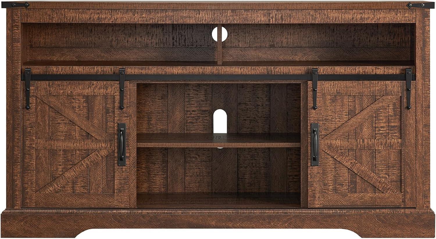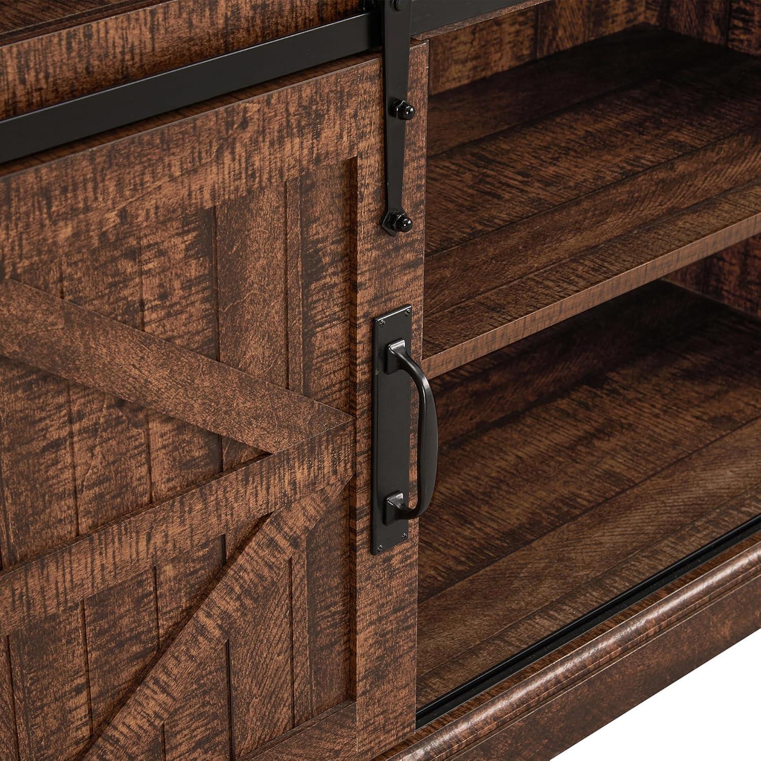 Our living room has truly transformed as we added this stunning farmhouse-style entertainment center.The natural grain and rustic character bring a warm, inviting vibe that perfectly complements our existing décor. Beyond aesthetics, its flexible storage options keep our media essentials organized without clutter. The two sliding barn doors glide smoothly, allowing us to highlight or conceal storage at will. Plus, the adjustable shelves mean we can customize the interior space to fit everything from gaming consoles to decorative items, making the setup both functional and gorgeous.