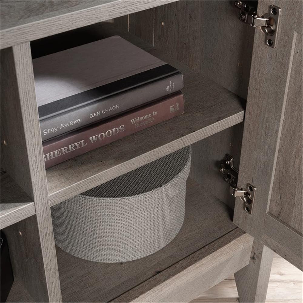 | Adjustable shelves behind framed doors and center shelf offer versatile storage for consoles, décor, and more | Assembly requires some time and patience despite being fairly straightforward |