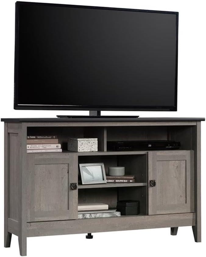 Beyond aesthetics, the build quality offers practical benefits that we truly appreciate. The sturdy construction supports TVs up to 50″ and 50 lbs., while the adjustable shelves behind framed doors and in the center allow us to customize storage for consoles, DVDs, decor, and more. A helpful cord management system keeps cables neatly tucked away, maintaining a clean and clutter-free environment. Here’s a quick overview of its key specifications: