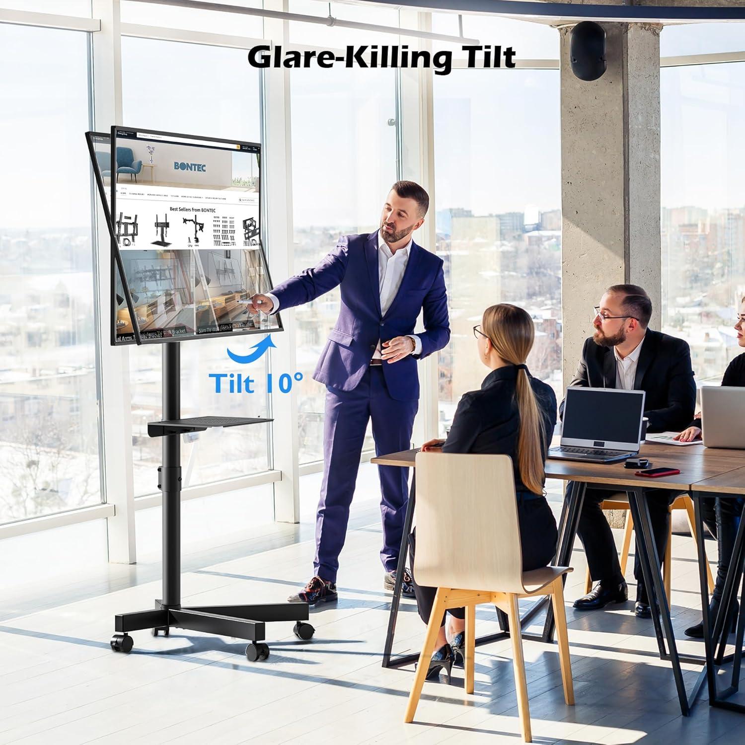 In our search for a versatile, sturdy, and well-designed TV stand, the BONTEC Mobile TV Stand truly proved to be a game-changer.Its thoughtful tilt function enhances viewing comfort, while the lockable casters give us the perfect balance between mobility and stability. The sleek cable management system keeps everything neat, and the adjustable shelf adds practical convenience for all our media devices. Whether in a cozy living room,a dynamic meeting space,or a video room setup,this stand adapts effortlessly to our needs. For anyone looking to elevate their TV setup with a reliable, space-saving solution, the BONTEC Mobile TV Stand is definitely worth considering.Ready to transform your viewing experience? Check out the BONTEC Mobile TV Stand on Amazon today!