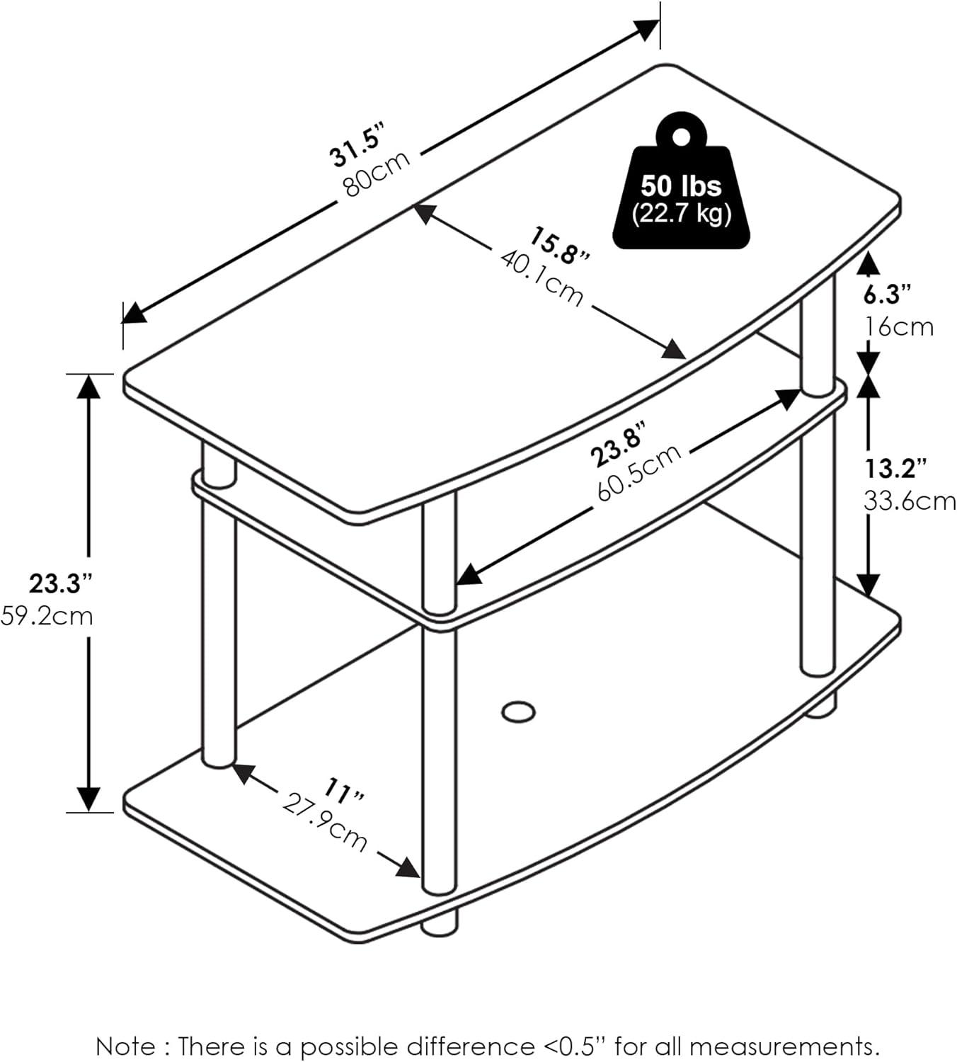 We found this TV stand to be an excellent match for screens up to 32 inches, providing a secure and stable base specifically designed to handle the weight and size limitations of smaller to medium flat-screen TVs. Its top shelf accommodates up to 50 lbs, which comfortably supports most TVs within this size range without any worry of sagging or instability. The open design with rounded plastic tubes not only adds a sleek, modern flair but also contributes to the structure’s overall sturdiness while allowing for easy ventilation around your TV.